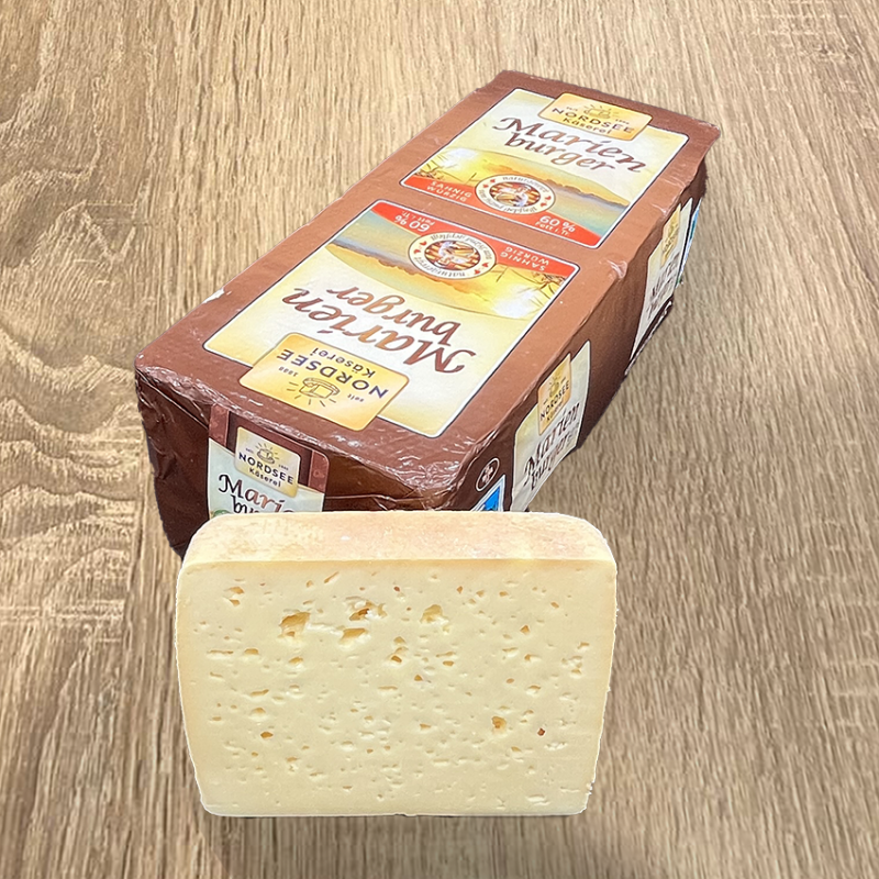 Naturgereifter Alt Mecklenburger Tilsiter. Pikant und saftig im Aroma in der Naturrinde gereift.